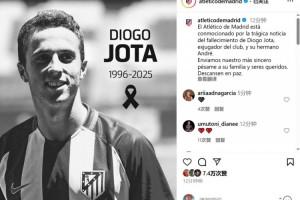 马竞官方发推哀悼:“马竞俱乐部对前球员若塔及其兄弟安德烈-席尔瓦的离世表示沉痛哀悼。