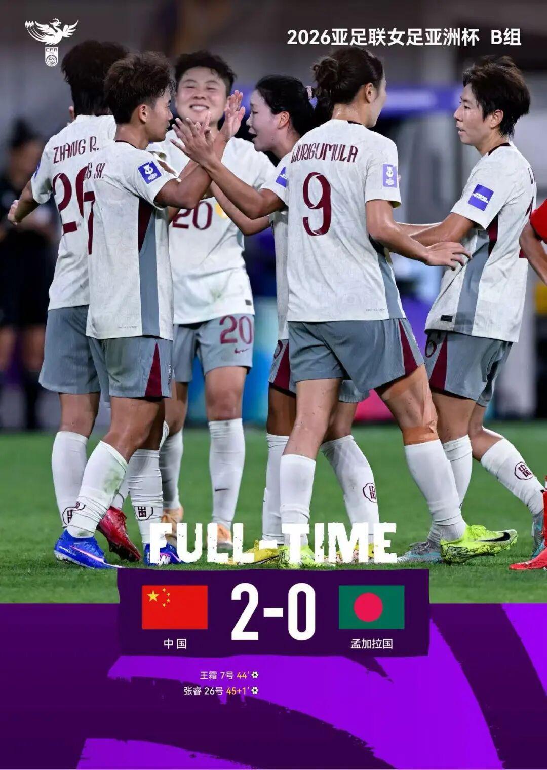 下半场,中国女足不断利用身高优势冲击对手,但未能继续扩大比分,最终以2比0战胜对手。